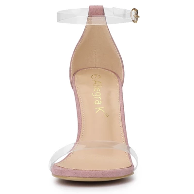 - Stiletto Heel, Clear Ankle Strap, Open Toe, Faux Suede