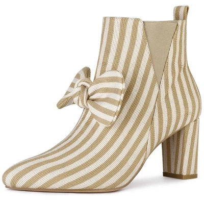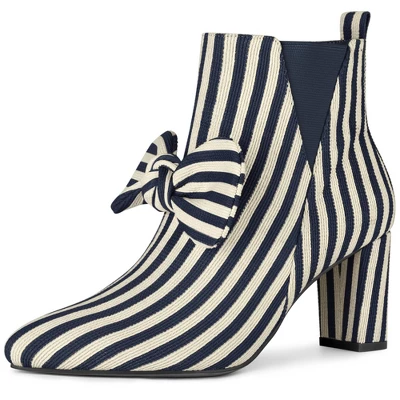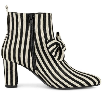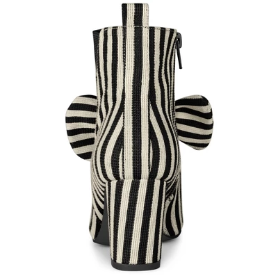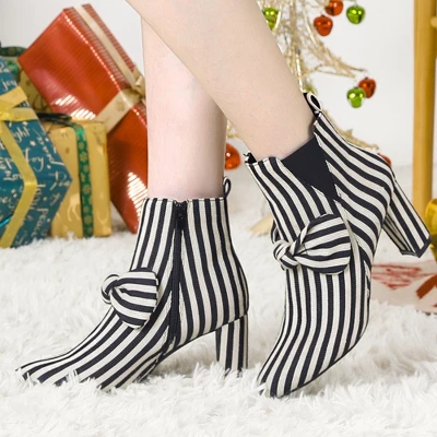 These fashionable striped boots have become a modern wardrobe staple of shopping on the streets. Strut in style with these zip-high chunky heels boots. They are great for going out or traveling. They can be easy to be paired with your jeans or dresses. Please check your size to make sure the item fits before ordering.