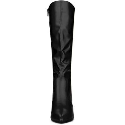 These knee-high boots set on a lofty stiletto heel serve as an impeccable standby style and allow the toes to move comfortably. You can pair these knee-high boots with your favorite dress or jeans. Buckle Decor Knee High Boots; Stiletto Heel; Side Zip; Vamp: PU; Outsole: Rubber; Heel: ABS; Heel Height: 3 1/7 inches; Shaft Height: 15 inches.