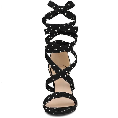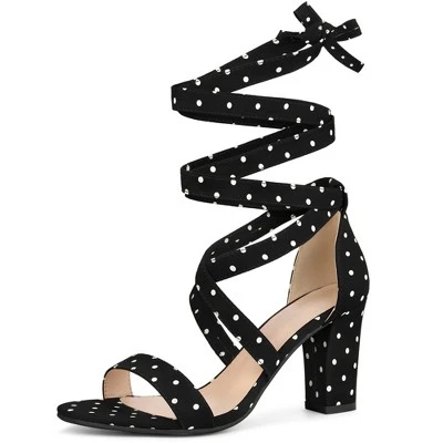 - Lace-Up Style, Open Toe, Strappy Heels, Polka Dots Pattern, Block High Heels Sandals