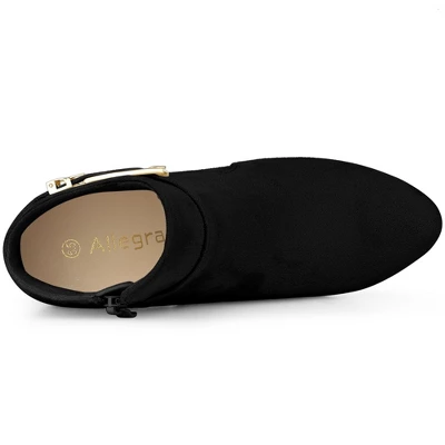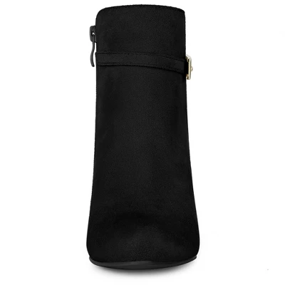 - Buckle Ankle Booties; Round Toe; Side Zip