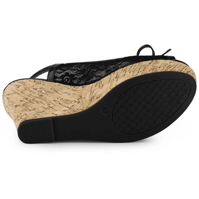 - Platform Wedges, Lace Wedge Heel Sandals, Open Toe, Bow Decor, Wood Wedges Sandals