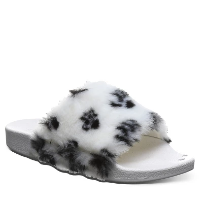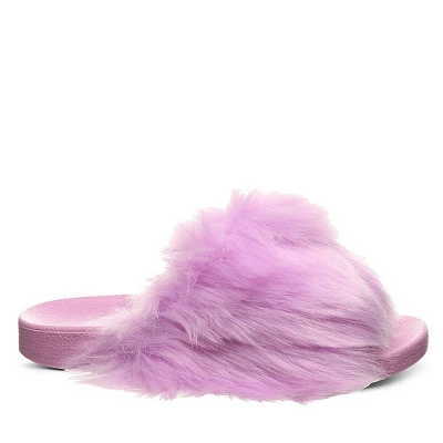 Sassy, pretty slippers. Plush faux fur adds excitement while the molded athletic-style outsole provides unexpected stability and comfort. Stay on your feet and look good doing it. Perfect for an impromptu living-room dance party with your besties!