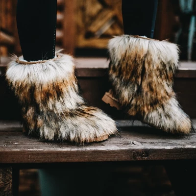 Turn heads and have their attention in this fuzzy statement piece. This boot is 8 inches tall, constructed of cow suede and finished with faux fur. Step into comfort with a wool blend lining and comfort sheepskin footbed.