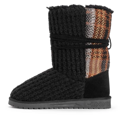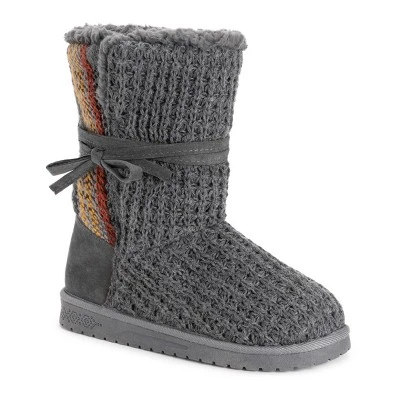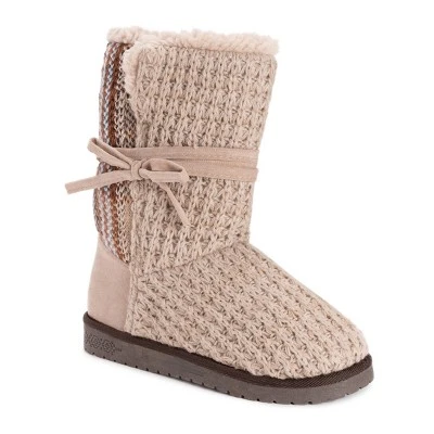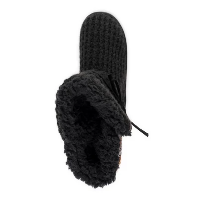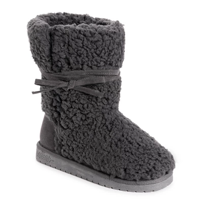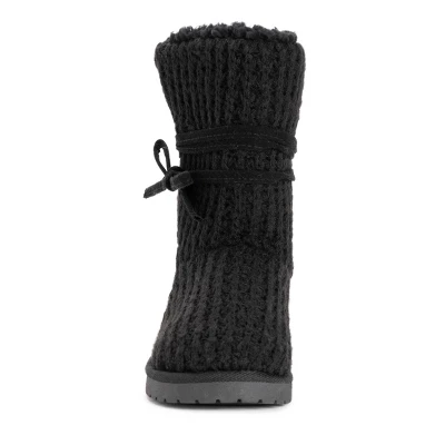 Soft and sweet Essentials by MUK LUKS? Clementine Boots are a pretty way to warm up. Beautiful knits and cute tie detail pull your look together while durable sole keeps feet warm and dry. Spot clean, no bleach, dry flat. Imported. -TPR Sole-100% Polyester Faux Fur Lining-100% Acrylic Knit Upper -Foam Insole-Women’s Whole sizes 6-11-Half Sizes Size Up-Multiple color options
