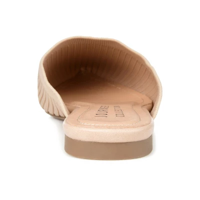 The perfect mule flat for zero-fuss looks the Aniee by Journee Collection. With a padded footbed and a tiny stacked heel this versatile look can be worn with ease all day. Knit fabric uppers detailed with an almond-shaped toe complete this wardrobe essential. At Journee Collection our flat styles will have you looking just as professional as the boss at work to having the cutest shoes when you go out for the night.