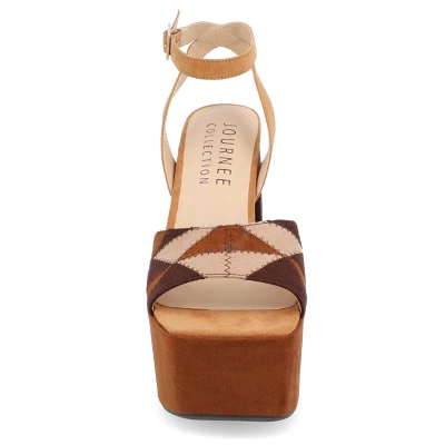 Our Asherby sandal from Journee Collection is sure to turn heads. This retro look has beautiful denim uppers, crisscross strap details, a geometric pattern, and a buckled ankle strap feature that will have your outfit looking better than before. Their 4 mm Tru Comfort Foam™ insole and open square toe will make your feet more comfortable than ever.