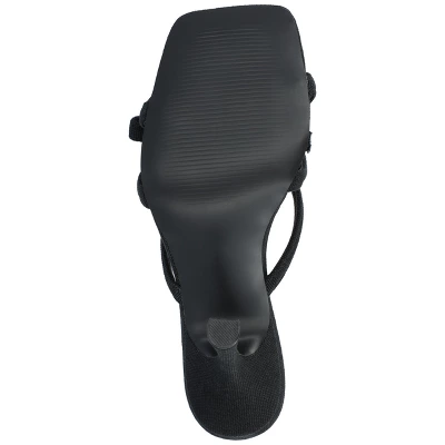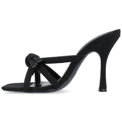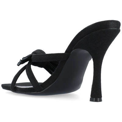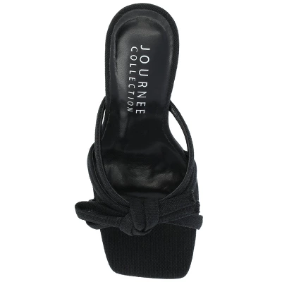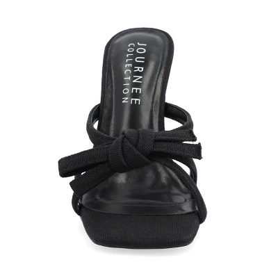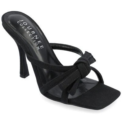 The Cilicia stiletto heels from Journee Collection are certain to bring on the compliments. The canvas material, padded footbed, multi-strap bow detail, and open square toe will make for the perfect style combination to leave these shoes taking you anywhere you want to go. The slip-on closure will make them an easy heel to slip off on busy days.