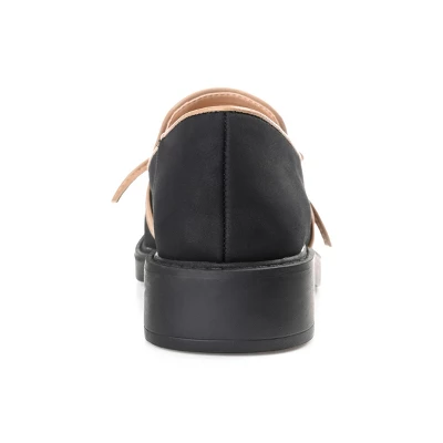 Kick your day off with a retro vibe in the Eilien by Journee Collection. This vegan leather loafer gives any outfit a charming finish with a round-toe and notches at the topline. A 4 mm Tru Comfort Foam� footbed and a low block heel perfect this comfortable yet classy look. At Journee Collection our flat styles will have you looking just as professional as the boss at work to having the cutest shoes when you go out for the night.