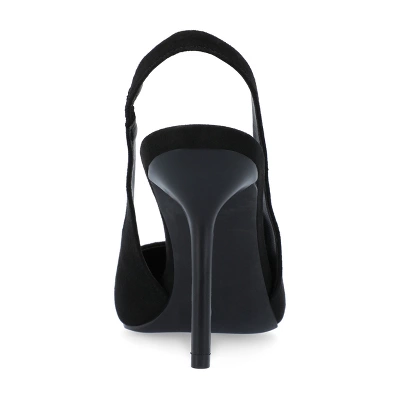Take your shoe game to the next level with the Elenney stiletto heels from Journee Collection. Designed with a bold, pointed-toe silhouette, these heels are the perfect statement piece to elevate any outfit. The supple vegan leather, wide-width footbed, and 4 mm Tru Comfort Foamâ„¢ insole, combined with the pull-on slingback style, offer both comfort and convenience, so you can dance the night away in style.