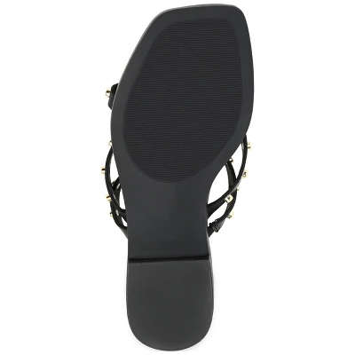 Cool and oh-so-comfy, the Fanny by Journee Collection. This multi-strap slide fits like a dream with its soft vegan leather uppers and 4 mm Tru Comfort Foamâ„¢ insole. Studded details crown this edgy look. At Journee Collection, our sandal styles are going to be perfect for any occasion. Whether that be a formal, business, or casual dress, these sandals will be a perfect match.