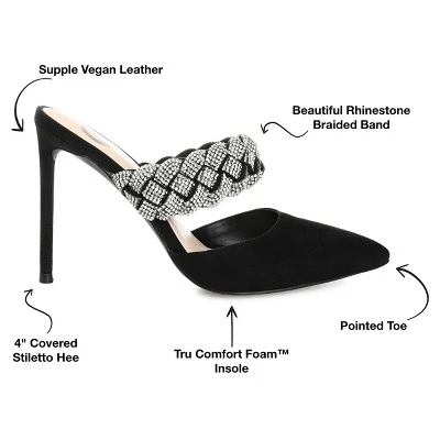 In the Hazzl heels by Journee Collection, your certain to be the belle of the ball. The soft vegan leather and 4 mm Tru Comfort Foam™ insole on this pointed-toe heel will keep you on your feet no matter how late the party goes. A braided band with rhinestone details crowns the design for a glam finish. At Journee Collection, our pump styles will let you go from a fun night out with the girls to kicking back and relaxing at the end of the night without any trouble.