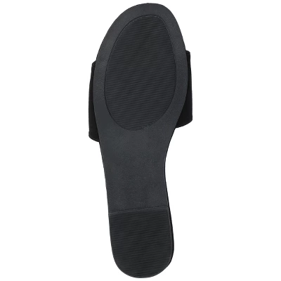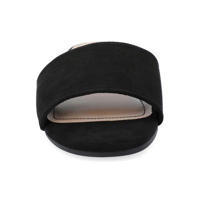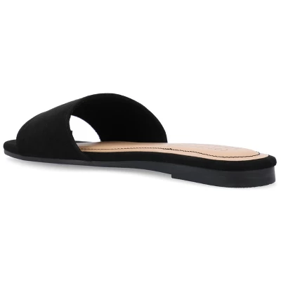 The Kolinna sandal from Journee Collection will take you around town while keeping your feet comfortable with their 4 mm Tru Comfort Foamâ„¢ insole. Their luxe vegan leather, single band design, slide style, and open round toe will give you the stylish qualities you need to match them with any outfit. To keep it simple: their slip-on closure will make them an easy grab-and-go shoe to rush out the door.