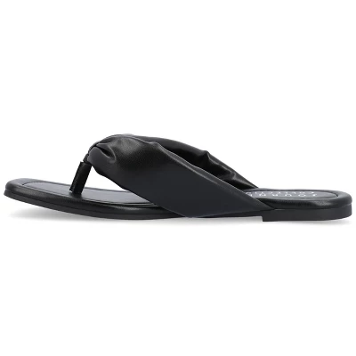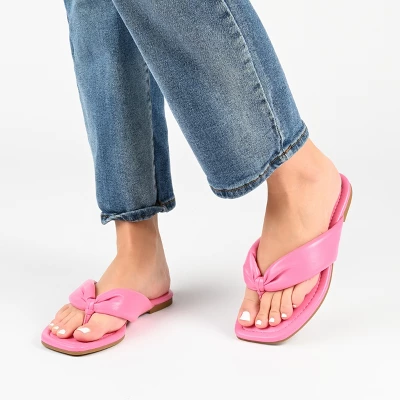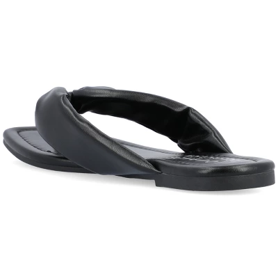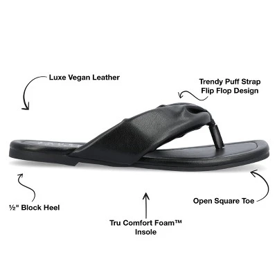 The Kyleen puffed sandal from Journee Collection is the perfect way to go from old to bold this summer. This design offers you all the style and comfort you could want with their 4 mm Tru Comfort Foam� insole luxe vegan leather puff flip-flop style and open soft square-toe. As a bonus their slip-on closure makes them the perfect grab-and-go shoe.