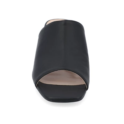 With the Mercerr heels by Journee Collection, you can instantly elevate your favorite outfits. This slip-on silhouette features soft vegan leather uppers detailed with an open square toe. A padded footbed and 2-inch kitten heel finish the design for a comfortable but elevated fit. At Journee Collection, our pump styles will let you go from a fun night out with the girls to kicking back and relaxing at the end of the night without any trouble.