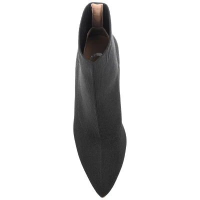 Start the new season off on in a glam sock-styled bootie, the Milyna by Journee Collection. This pull-on style features knit fabric uppers and an oh-so-comfy 4 mm Tru Comfort Foam™ footbed. A pointed-toe adds a flirty finish, and a stiletto heel elevates the look. At Journee Collection, our booties will give you that comfortable yet stylish look, perfect for when you’re in the office all the way to a fun night out with the girls.