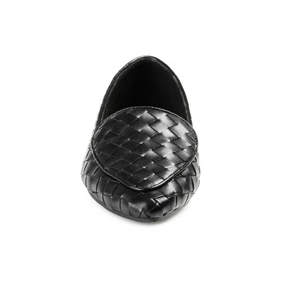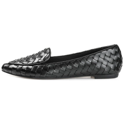 Fun fresh fabulous what more could you want in a flat? The Misty by Journee Collection is a classic loafer flat styled with notch cutouts at the vamp and a pointed-toe. Beautifully woven vegan leather uppers shape the look and a 4 mm Tru Comfort Foam� footbed lines the insole. At Journee Collection our flat styles will have you looking just as professional as the boss at work to having the cutest shoes when you go out for the night.