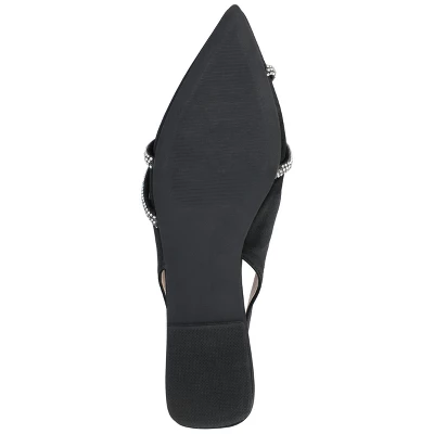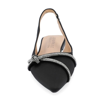 The Rebbel flats from Journee Collection will give you that bold look while boosting your confidence along the way. With their chic satin material, sling back strap, rhinestone knotted detail, and pointed toe, they will give you the perfect combination of style to take you anywhere. As a bonus, their padded footbed and slip-on closure will leave your feet comfortable while you are out and about.