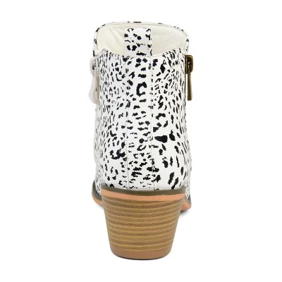Show off your favorite style in the side-zip ankle bootie by Journee Collection. This bootie features faux leather uppers with raised vamps and side zipper detail. An almond toe creates a flattering silhouette and stacked heels complete the look. At Journee Collection, our booties will give you that comfortable yet stylish look, perfect for when you’re in the office all the way to a fun night out with the girls.