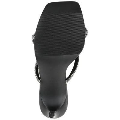 The Reena by Journee Collection has a striking appearance. For a fresh look, the man-made straps on this airy heel are embellished with rhinestones throughout. The design is completed with a stiletto heel and 4 mm Tru Comfort Foam™ insole for increased comfort. At Journee Collection, our pump styles will let you go from a fun night out with the girls to kicking back and relaxing at the end of the night without any trouble.
