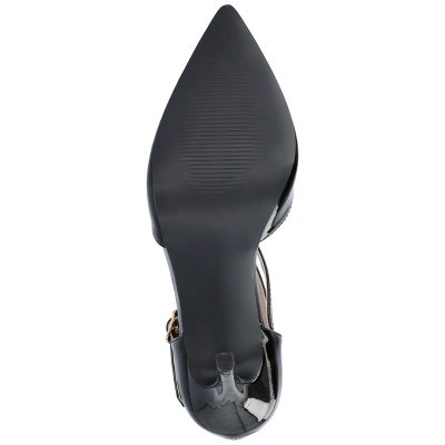 Show off stunning style in shiny t-strap pumps by Journee Collection. These sleek cut-out pumps feature premium faux leather uppers with a lustrous patent finish and a modern double t-strap design. At Journee Collection, our pump styles will let you go from a fun night out with the girls to kicking back and relaxing at the end of the night without any trouble.