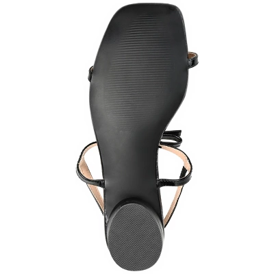 A sleek look for summer, the Zaidda by Journee Collection. This T-strap sandal features soft vegan leather and a padded insole for the perfect fit. A retro slingback strap and bow accent finish the design for an elevated finish. At Journee Collection, our sandal styles are going to be perfect for any occasion. Whether that be a formal, business, or casual dress, these sandals will be a perfect match.