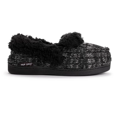 Stay comfortable this season in MUK LUKS Women’s Anais Slippers. Faux fur full coverage and durable indoor/outdoor sole make these slippers perfect for chilly temps. Wipe with damp cloth, do not bleach, dry flat. Imported. -Indoor/Outdoor TPR Sole-100% Acrylic Upper-100% Polyester Lining-Foam Insole-Faux Shearling -US Women’s Whole Sizes S (5-6), M (7-8), L (9-10), XL (11-12)-Multiple color options available