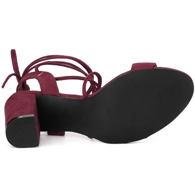 A must-have in every girl’s closet! These sandals are offering an impressive 8.5 cm heel high, rendered in primary color for maximum versatility, which adds just the right amount of feminine charm to this pair of shoes. Design Details: Lace-up; Chunky Heels; Open Toe;Slingback Style; High Heel Sandals; [ Material ]: 2 colors: Black, Burgundy Faux Suede Upper; Rubber sole; ABS Heel; Heel Height: 3.3″ (approx 8.5cm).