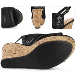 - [ FEATURES ]: open toe; wedge heel; buckle closure; ankle strap; braided upper; lightly padded; classic shoes