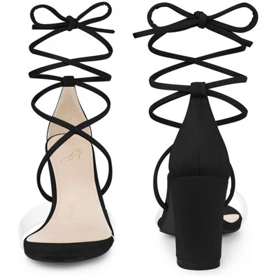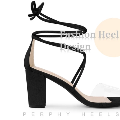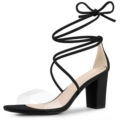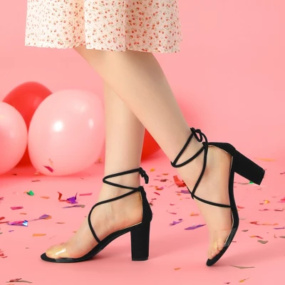- Chunky Heel; Strappy Clear Sandals