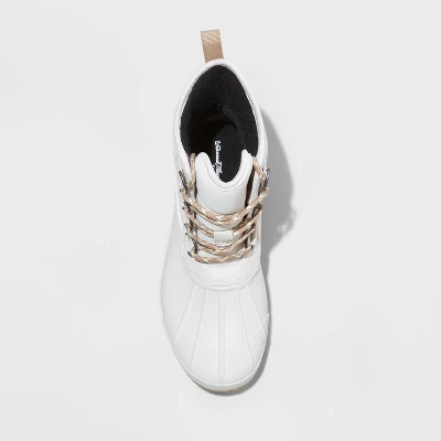 Whether you’re going out in a dress or just enjoying a comfy day in jeans and a tee, finish off your look with the Tiffy Duck Boots from Universal Thread™. These duck boots are designed with a soft lining to help keep your feet comfortable. Boasting a waterproof construction, these boots make a great choice during rainy days and colder weather, and allow a nice fit with their lace-up style.